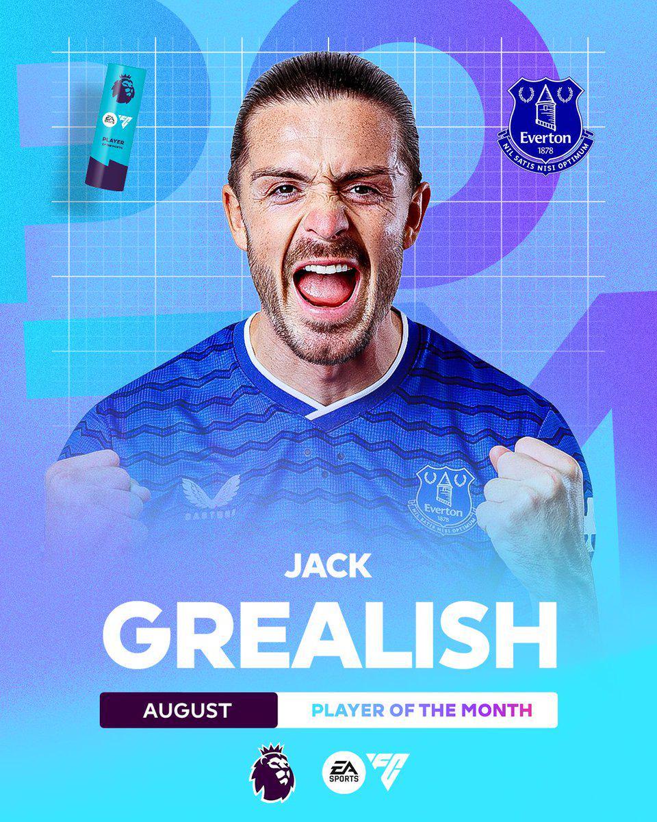 格拉利什被评选为2025年8月的月度最佳球员,这也是他职业生涯中首次获得这一奖项,在夏季从曼城租借加盟埃弗顿后,格拉利什度过了令人惊艳的8月。